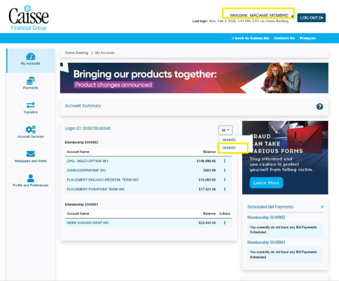 Find your Membership Number through the Online Banking Portal (Desktop, Tablet)